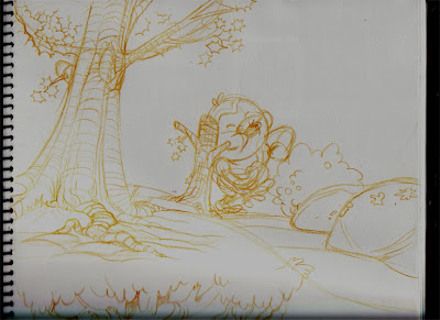 First I roughly sketched the background and using good ol' connector pens did some coloring.